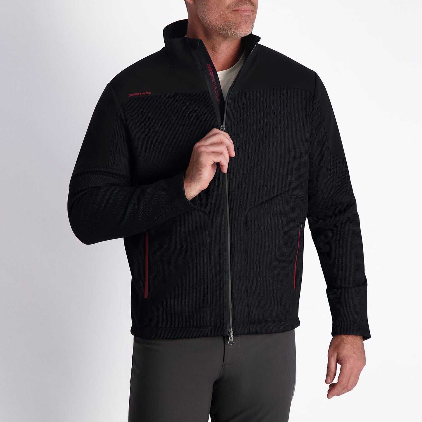Your new multi-season layer. Made from a stretch knit fabric with a water-resistant finish, this soft-to-the-touch jacket still stands up to the elements. It features an updated silhouette and best-in-class performance details—from the waterproof matte zippers to the fleece-lined collar and pockets.